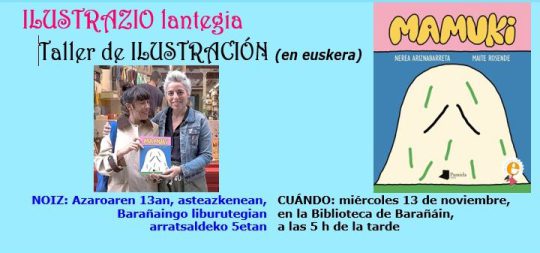 Etxepare saria irabazitako Mamuki haurrentzako album ilustratuarekin eginen dugu lantegia. Eta, gurekin izanen dira Maite Rosende ilustratzailea eta Nerea Ariznabarreta idazle...