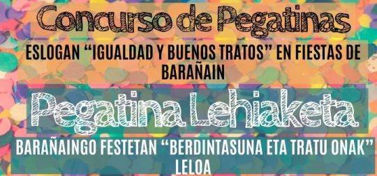 Hemen dugu "berdintasuna eta tratu onak Barañaingo jaietan" 2022ko pegatina lehiaketa!12 eta 30 urte bitartean badituzu eta Barañainen erroldatuta bazaude, animatu e...