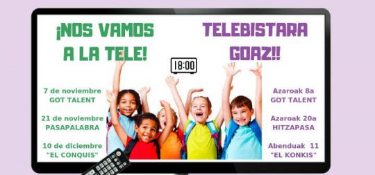 TELEBISTARA GOAZ¡¡Azaroak 8a - GOT TALENTAzaroak 20a - HITZAPASAAbenduak 11a - EL KONKIS