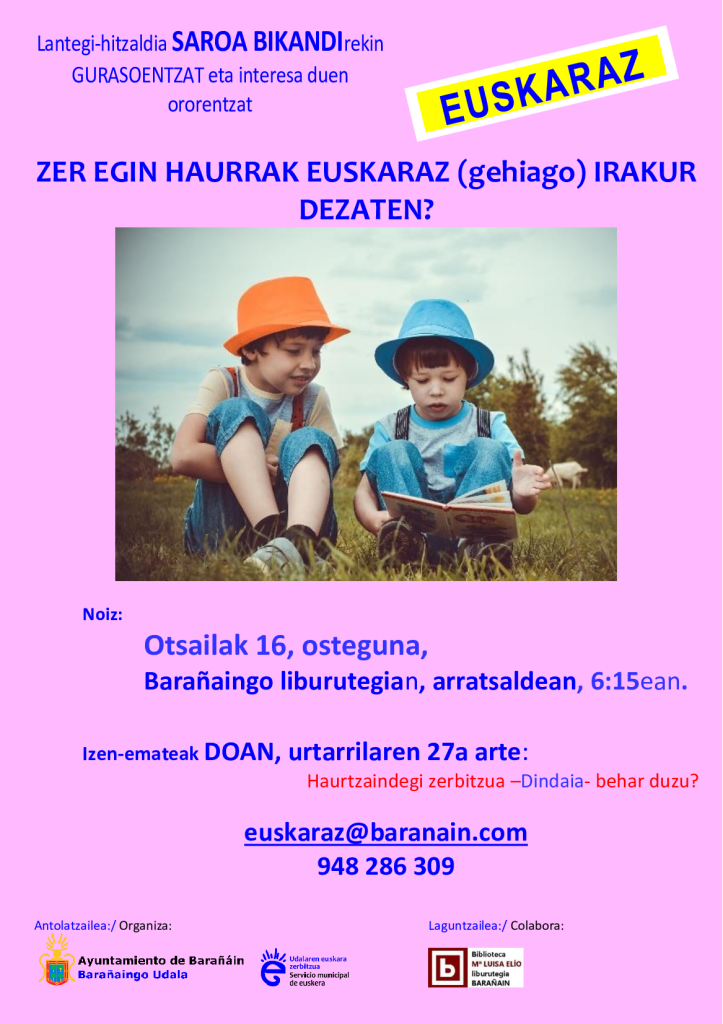 EUSKARA – Hitzaldi-lantegia: Zer egin haurrak euskaraz irakur dezaten?