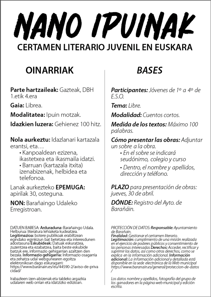 Idazlanak aurkezteko azken eguna: apirilaren 30a, osteguna.