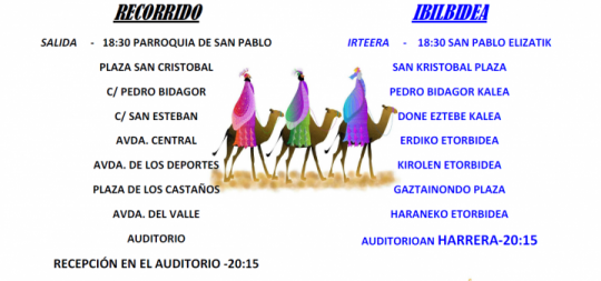 Urtarrilaren 5ean, igandez, urtero bezalaxe, Barañainera iritsiko dira Meltxor, Gaspar eta Baltasar, haien segizioak lagundurik. Hona hemen herrian eginen duten ibilbidea:...