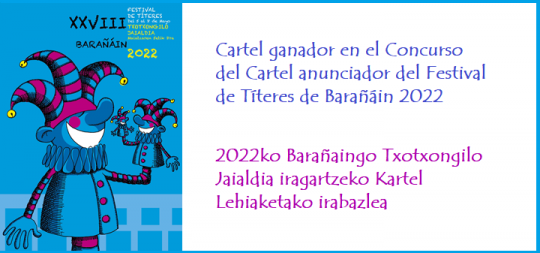 Badugu 2022ko Txotxongilo Jaialdia iragartzeko kartela!Barañaingo 2022ko Nazioarteko XXVIII. Txotxongilo Jaialdia iragartzeko kartel-lehiaketako epaimahaiak, martxoaren...