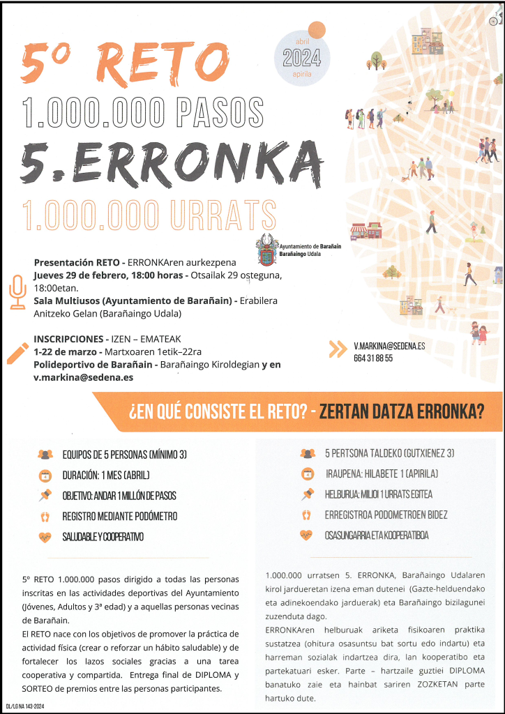 1.000.000 urratseko ERRONKAren helburua jarduera fisikoa sustatzea eta gizarte-loturak sendotzea da, zeregin kooperatibo eta partekatu bati esker. Hilabetez, eta gehienez 5 pertsonako taldeetan, 1.000.000 urrats lortu nahi dira, taldeko ibiltari bakoitzaren ekarpenak batuta.